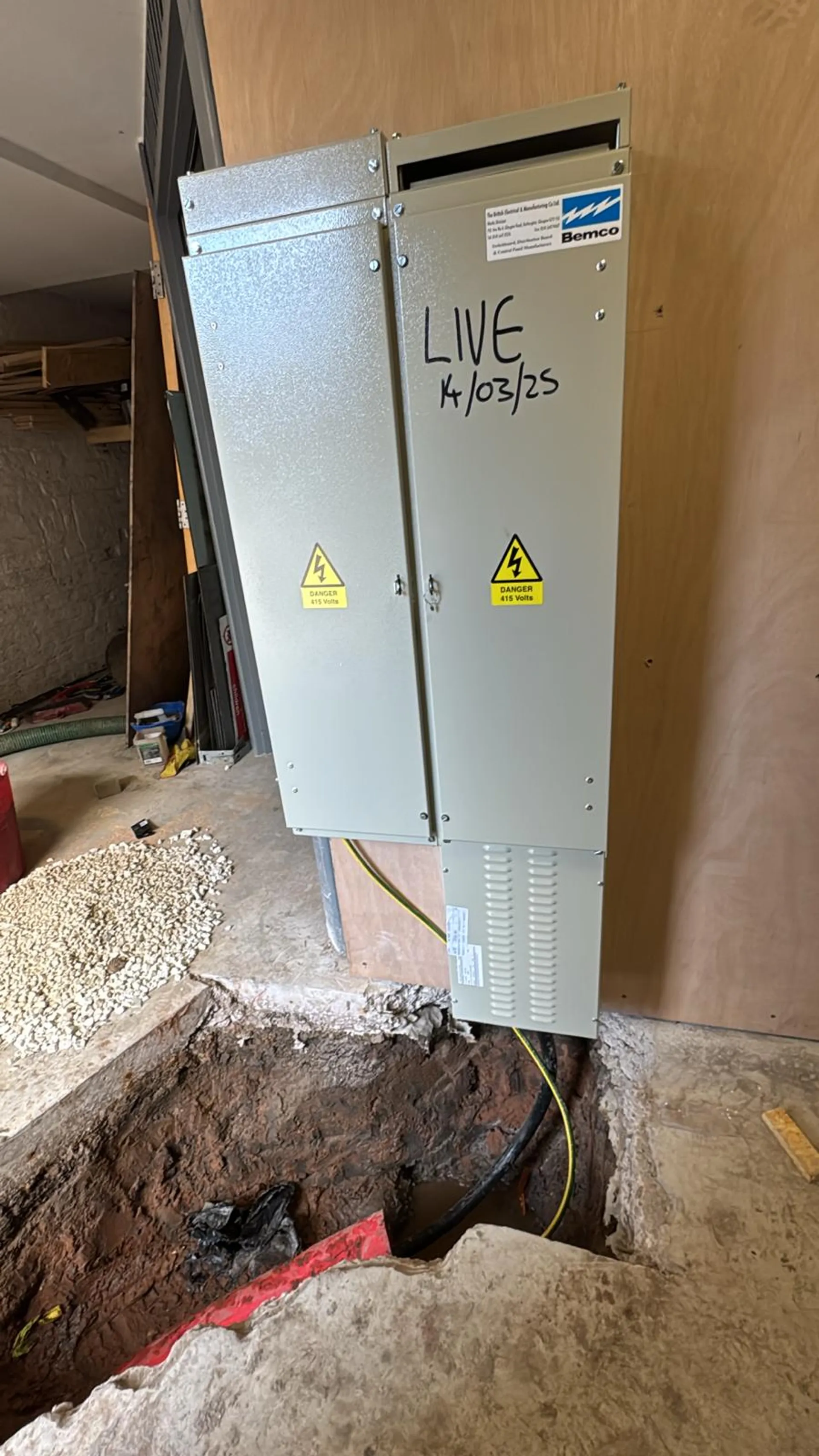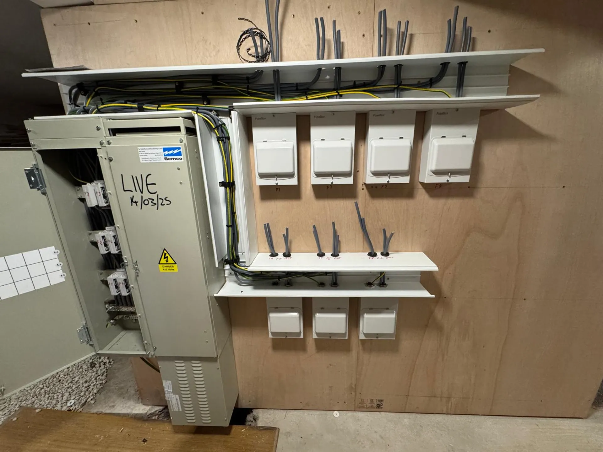 The project involved relocating all electrical meters, disconnecting from the old supply, and installing a brand-new upgraded connection.
